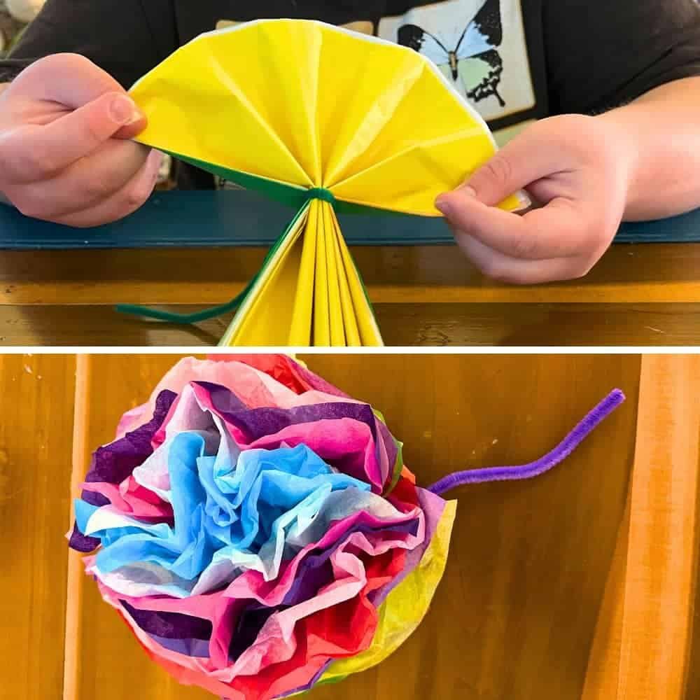 - Guide young kids as they make their own tissue paper flowers