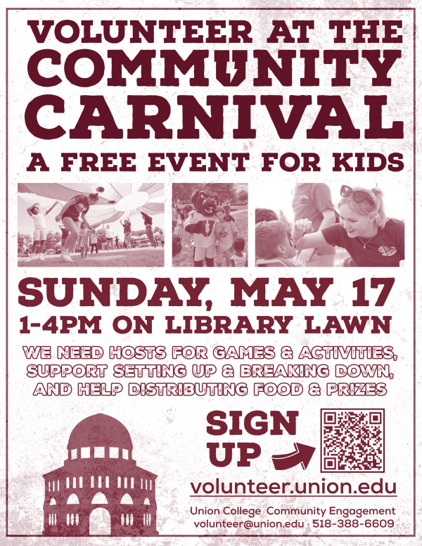 Parachute is provided by APO and the Kenney Center. This event is rain or shine (with an alternate indoor location if significant rain is expected). For questions, please reach out to volunteer@union.edu.